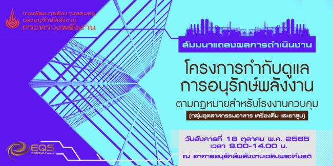การสัมมนาแถลงผลการดำเนินงาน โครงการกำกับดูแลการอนุรักษ์พลังงานตามกฎหมายสำหรับ โรงงานควบคุม (กลุ่มอุตสาหกรรมอาหาร เครื่องดื่ม และยาสูบ)